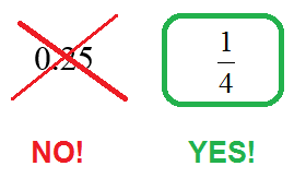 Іншими словами, якщо тільки можливо, треба замість дестякового дробу чи "аналітичного виразу" використовувати звичайний дріб.